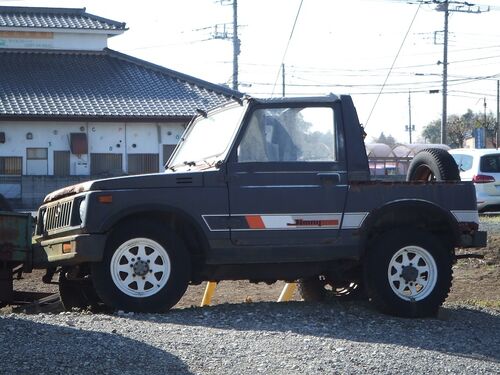 「シエラ」と「8」の「中間」 「宇宙刑事シャリバン」が乗ってたジムニー1000。 あれはホワイトでしたが、コイツはカタログのイメージカラーの紺色です。 「1000」って本当に見ないので、動く個体あったら結構な値が付く気がしますけど。 そうそう…